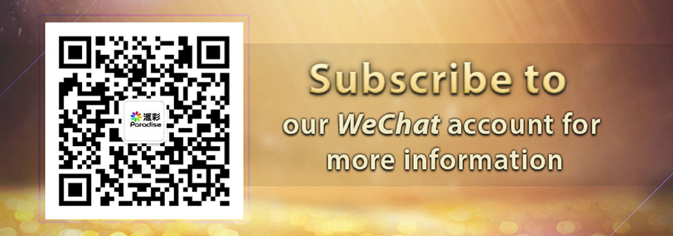 Follow our WeChat official account [滙彩Paradise] to get a up to 50% discount and chances to win fabulous prizes!